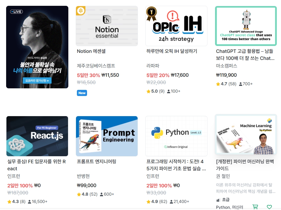 - 혜택: 지식공유자가 발행하는 할인 쿠폰으로 추가 할인 가능.